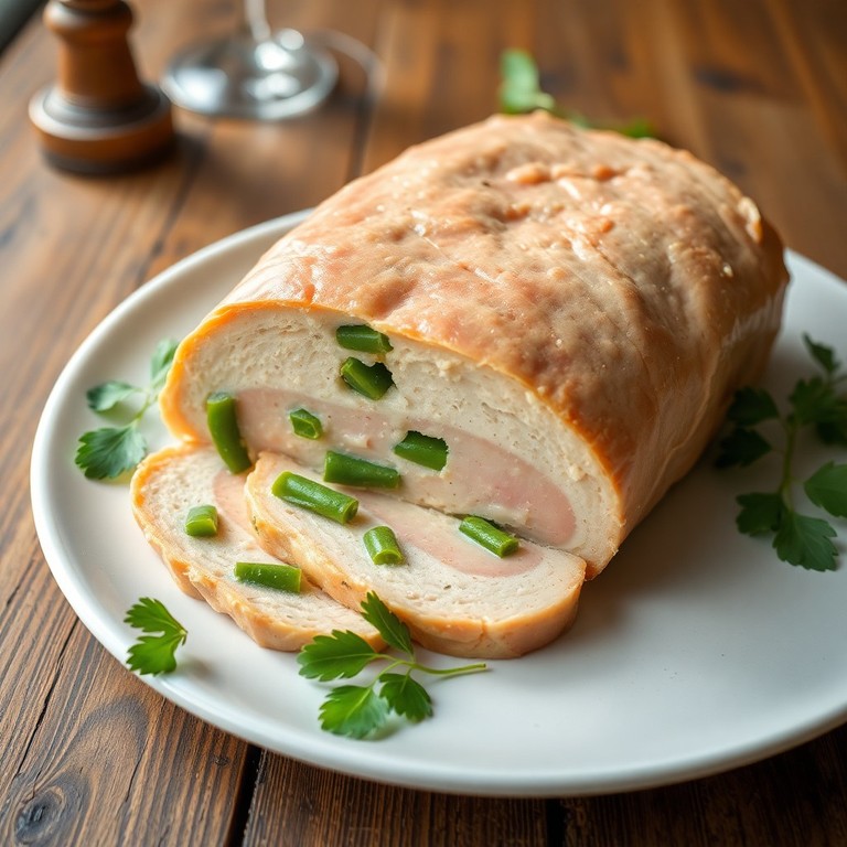 Une terrine maison riche en saveurs, intégrant du foie de poulet et des haricots verts pour une texture contrastée, idéale à servir en entrée ou en apéritif.
