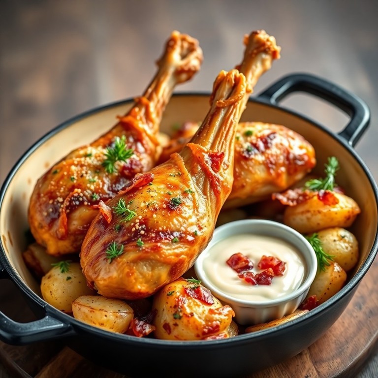 - Krokante Kippenbouten met Smash Aardappelen, Parmezaan en Bacon & Romige Dipsaus