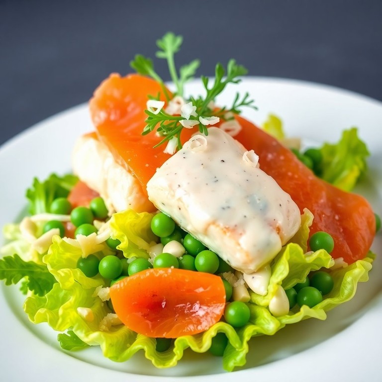 - Gerookte Zalm en Heilbotfilet Salade met Zilveruitjes en Romige Dressing