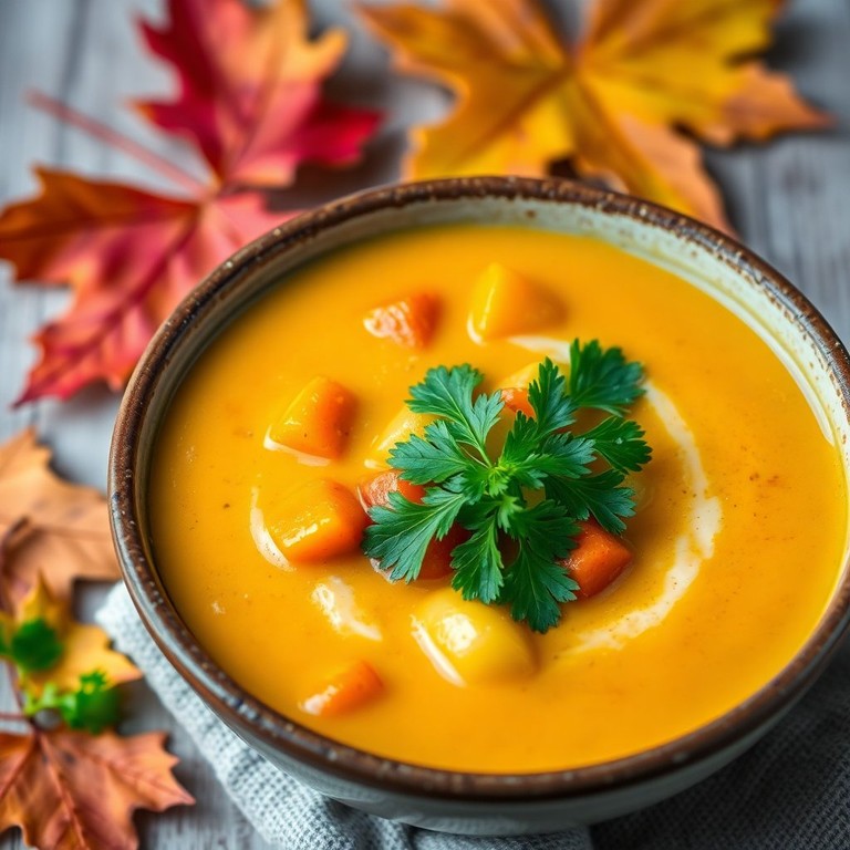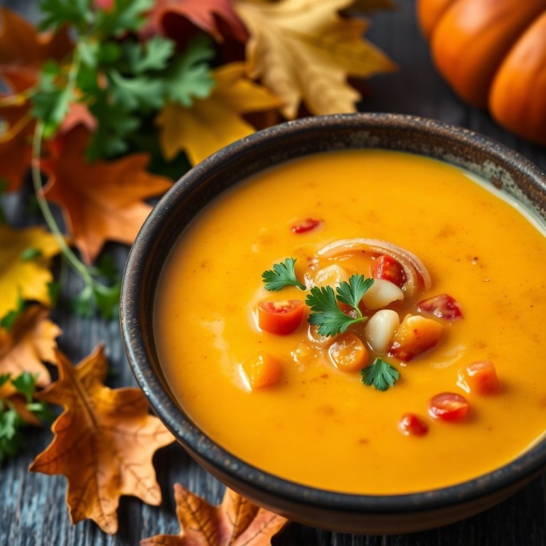 - Romige Pompoen en Knolraap Soep met Tomaat en Ui