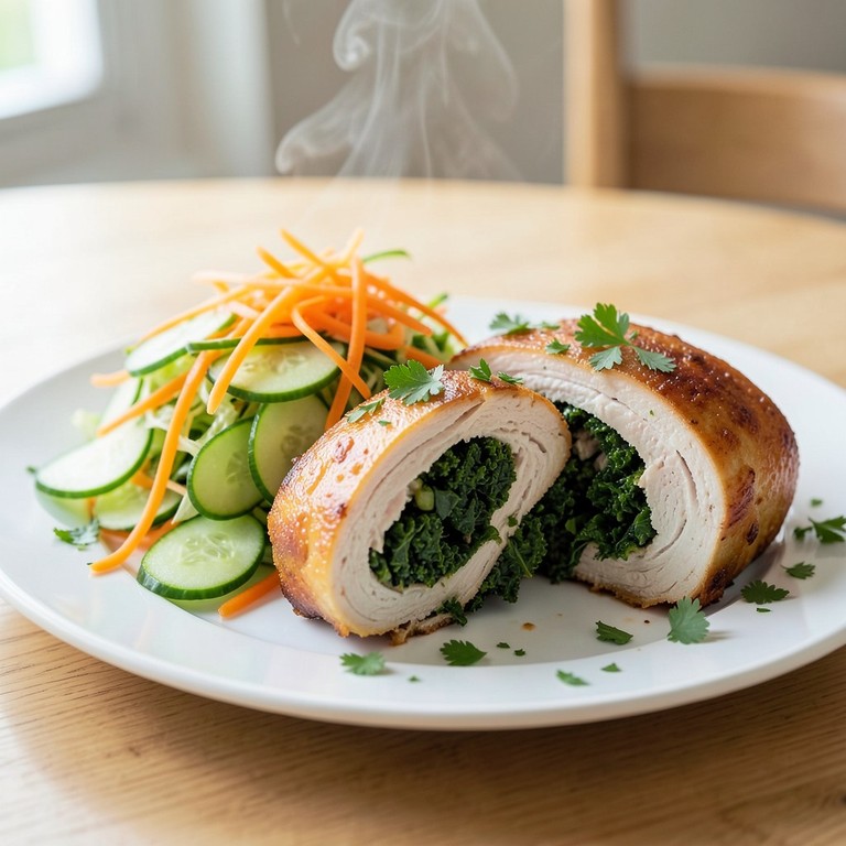 - Gevulde Kipfilet met Boerenkool en Peterselie, geserveerd met Komkommer-Wortel Salade