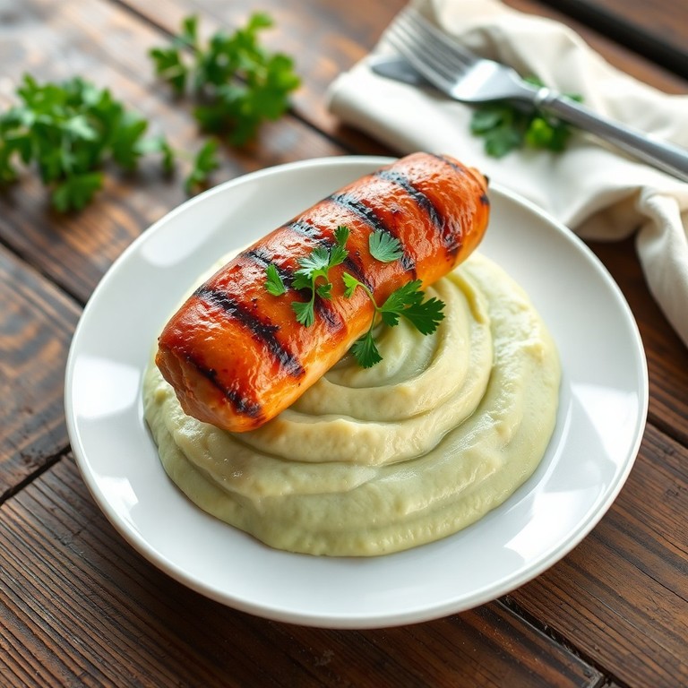 - Groene Selderij Romige Puree met Gegrilde Kipworst