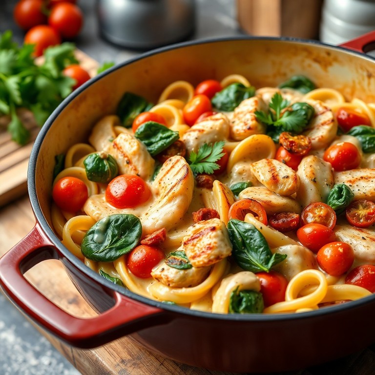- Romige Kruidige Kippasta met Spinazie en Tomaten – Alles-in-één Schotel