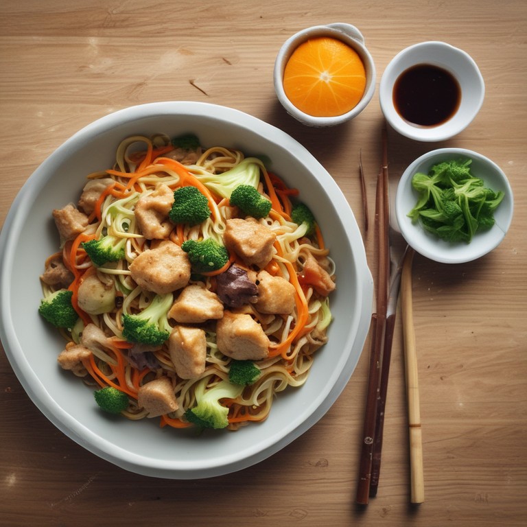 Asian Noodle Stir Fry with Soya Chunks and Orange-Cabbage Salad