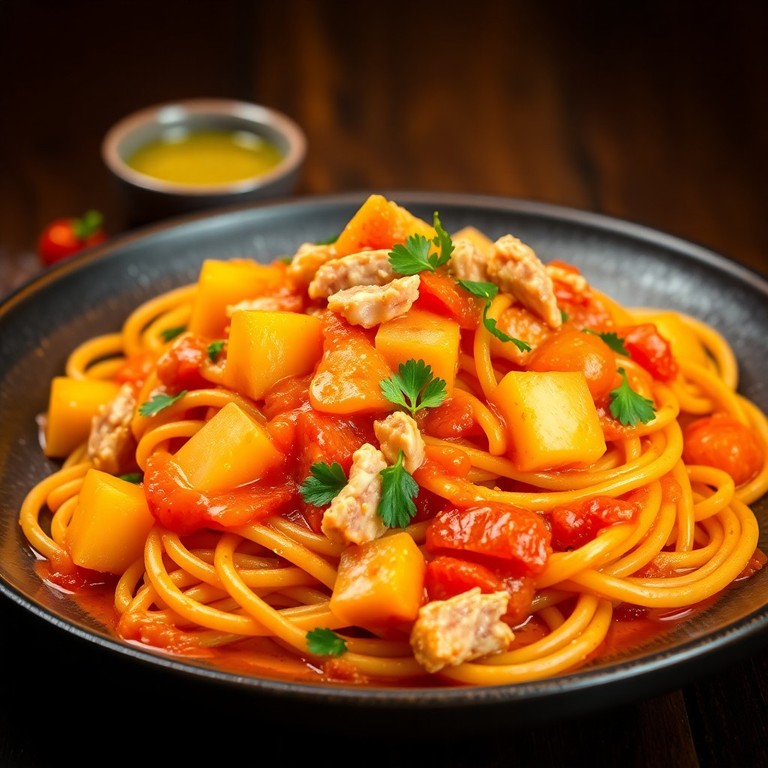 Pasta met Tonijn, Ananas en Zoete Tomatensaus