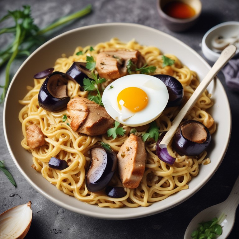 Tallarines de Pollo con Berenjena