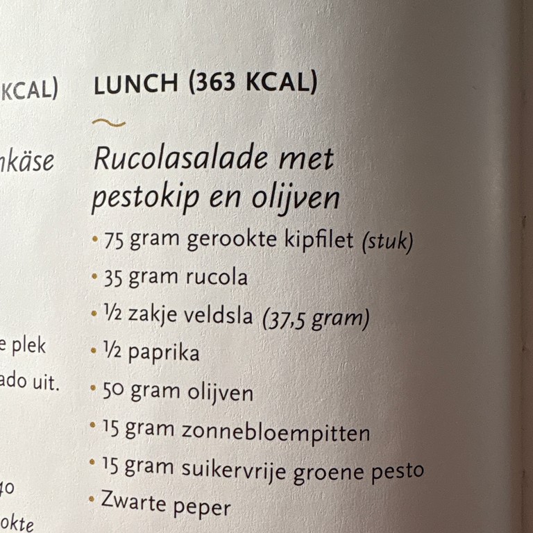 Rucolasalade met pestokip en olijven