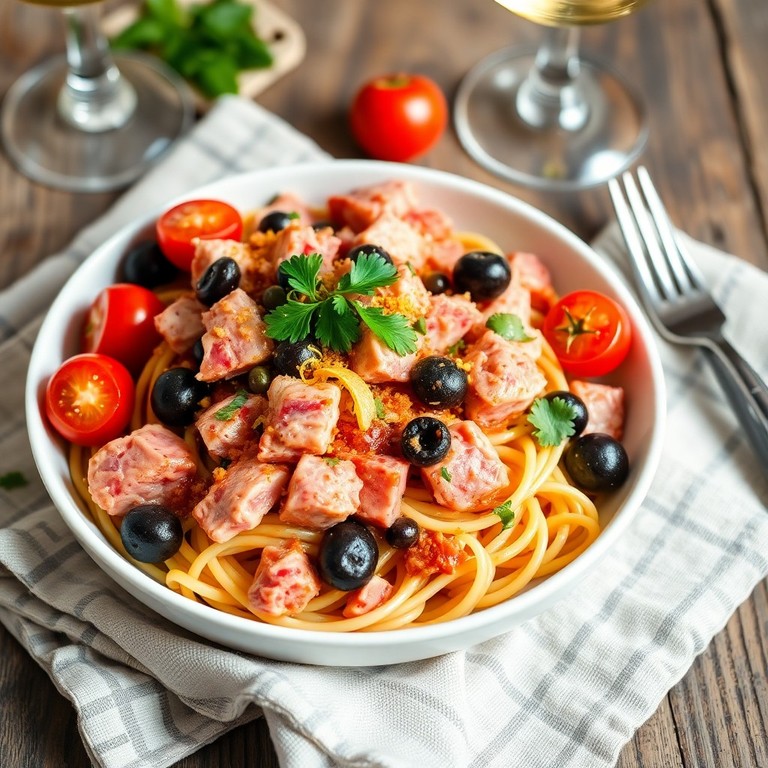 Mediterrane tonijnpasta met kappertjes en olijven