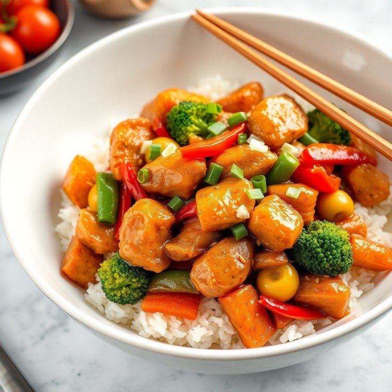 Kleurrijke Kip-Groente Stir-fry met Rijst