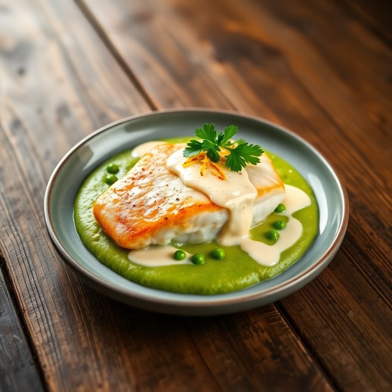 Heilbotfilet met Mierikswortelroom en Doperwtenpuree