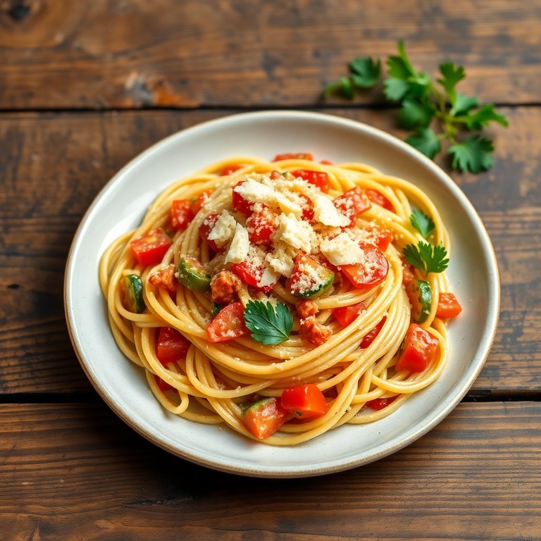 Pasta Carbonara met Spek, Groenten en Oude Kaas