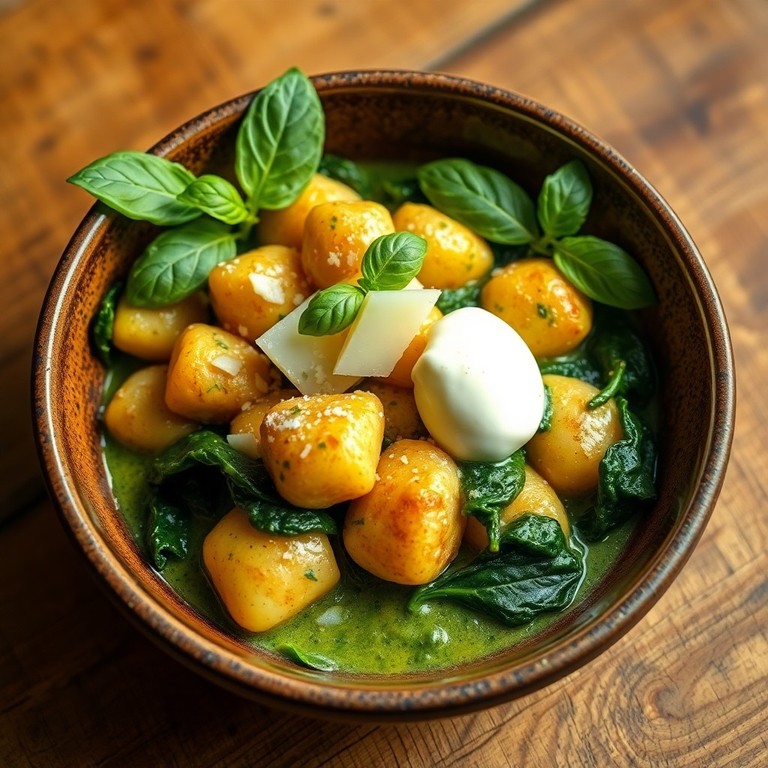 Gebakken Gnocchi met Pesto-Room, Spinazie en Burrata