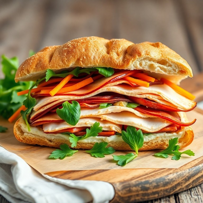 Sandwich Gourmet au Poulet et Dinde à l’Ail et Oignon