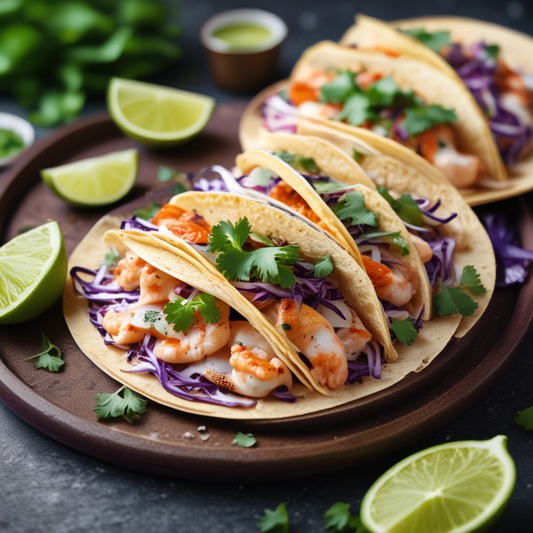 Blue Corn Tortilla with Shrimp, Fish, Green Habanero Salsa, Grated Cheese, Tomato, Red Chili, and Olive Oil