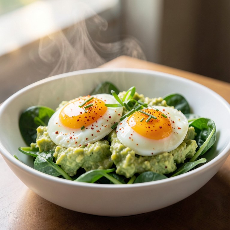 Œufs Pochés sur Lit d'Avocat et Épinards Frais