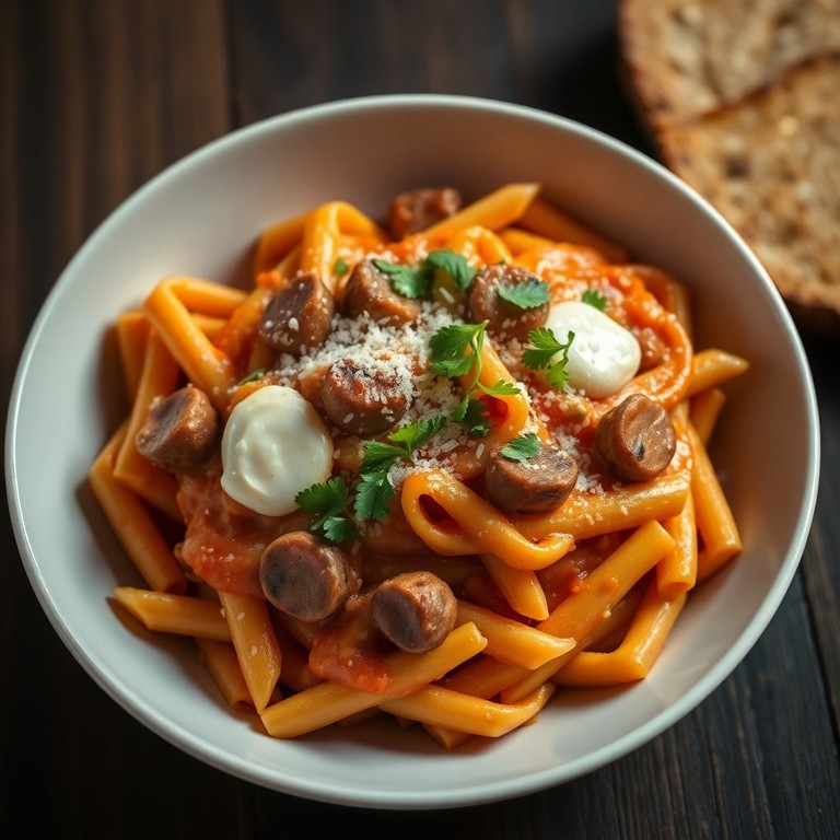 Romige Champignon Salami Pasta met Gorgonzola en Mozzarella