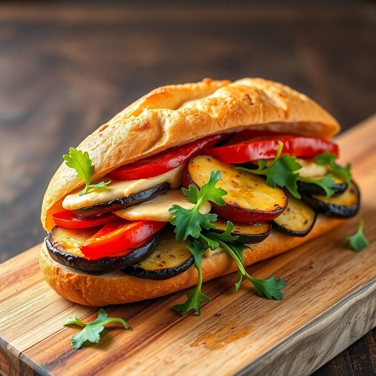 Pão estilo Subway com Legumes Assados e Hummus
