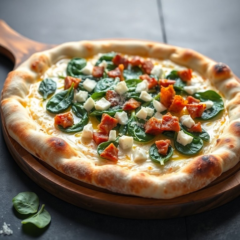 Pizza Blanche Gorgonzola, Épinards et Lardons