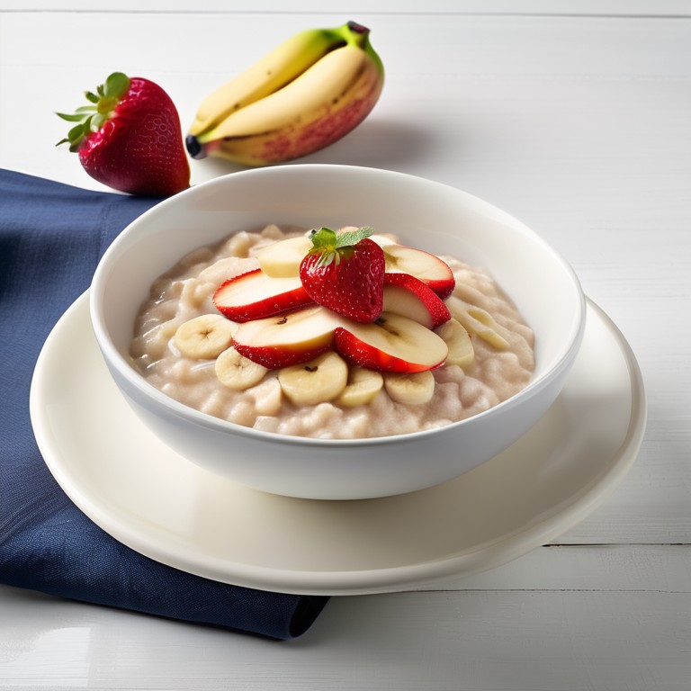 Deliciosa avena caliente con frutas frescas, perfecta para un desayuno nutritivo y reconfortante.