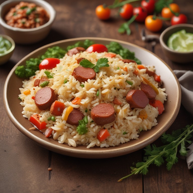 Um prato delicioso e reconfortante de arroz com linguiça e legumes frescos, perfeito para uma refeição em família ou para receber convidados. A combinação de sabores torna este prato incrivelmente saboroso e satisfatório.