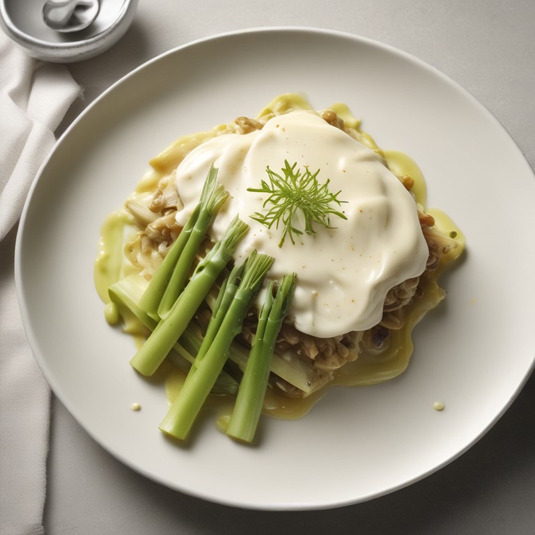 Een heerlijk bijgerecht van gestoofde prei in een romige kaassaus. De zachte prei combineert perfect met de rijke en romige kaassaus, op smaak gebracht met nootmuskaat en peper. Een eenvoudig en smaakvol gerecht dat perfect past bij verschillende hoofdgerechten.