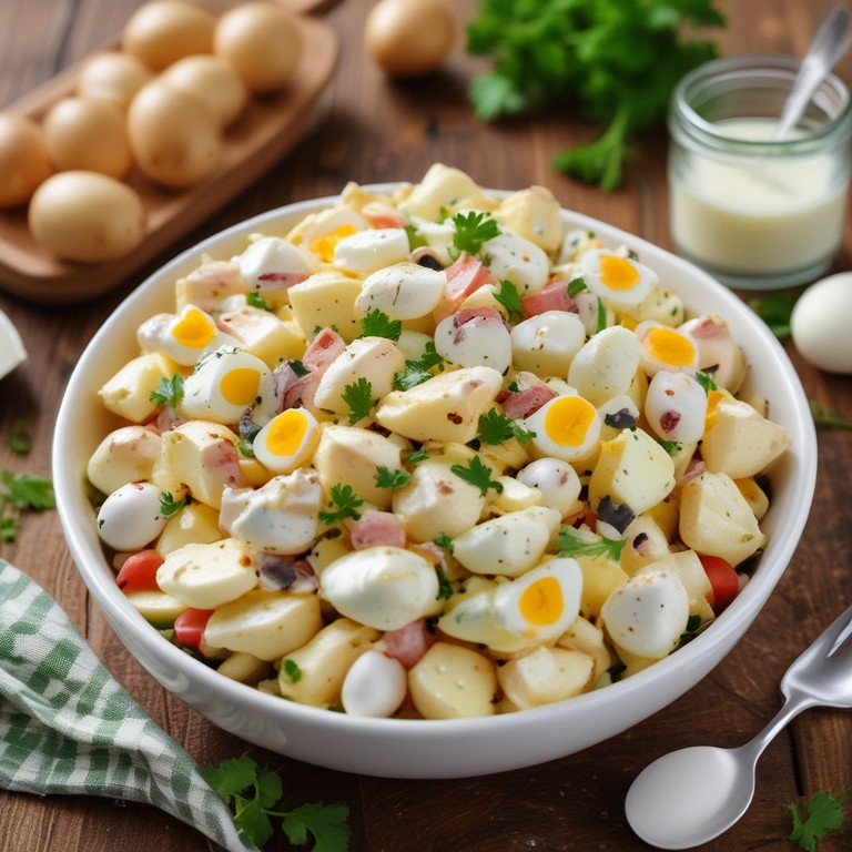 Esta salada de batata com ovo e queijo é uma opção deliciosa e refrescante, perfeita para acompanhar churrascos ou como prato principal em um dia quente. A combinação de batatas macias, ovos cozidos e queijo muçarela, tudo envolto em uma maionese cremosa, faz desta salada um sucesso em qualquer refeição.