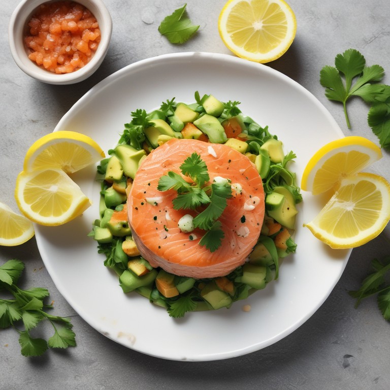 Este tartar de salmón fresco es una deliciosa y refrescante opción para los amantes del pescado crudo. Combina la suavidad del aguacate con el sabor del salmón y un toque de limón, perfecto como entrada o plato principal.