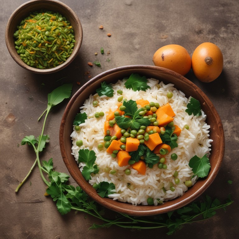 Ce plat savoureux et coloré combine du riz basmati parfumé avec des petits pois, des patates douces et des épinards frais. Parfait pour un repas sain et équilibré, il est rehaussé par des épices comme le curcuma et le cumin, qui ajoutent une touche de chaleur et de profondeur de saveur.