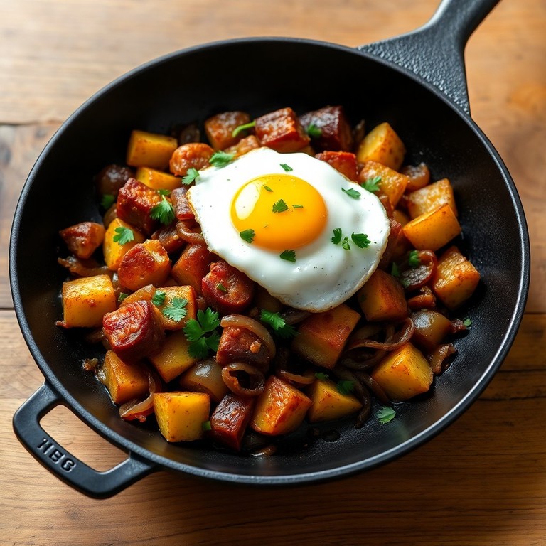 This Savory Pork Belly Hash is a hearty breakfast dish that combines crispy pork belly, golden potatoes, and sweet caramelized onions, topped with a fried egg for an extra touch of indulgence. Perfect for a filling breakfast or brunch!