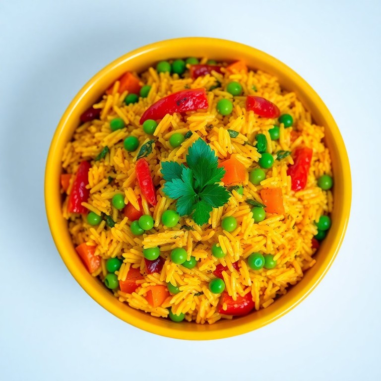 Een kleurrijke en smaakvolle rijstschotel vol met seizoensgroenten en specerijen.