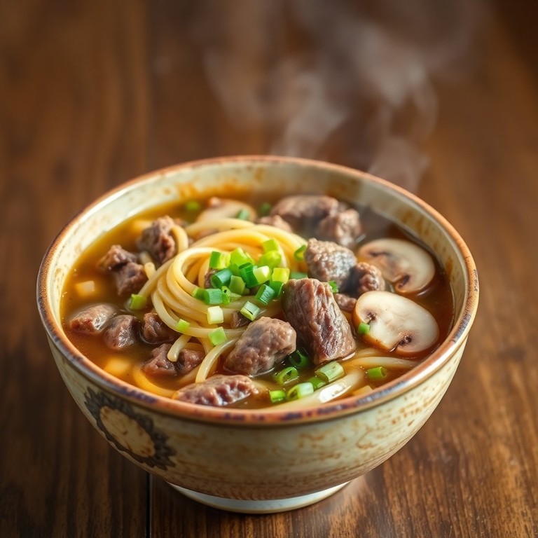 Sopa de Fideos Chinos con Carne Molida y Champiñones