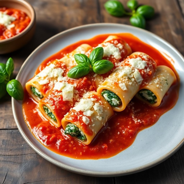 This Creamy Spinach and Ricotta Cannelloni recipe features delicate pasta tubes filled with a rich and creamy mixture of spinach and ricotta cheese, all baked to perfection in a luscious marinara sauce. It's a comforting Italian dish that's perfect for family dinners or special occasions.