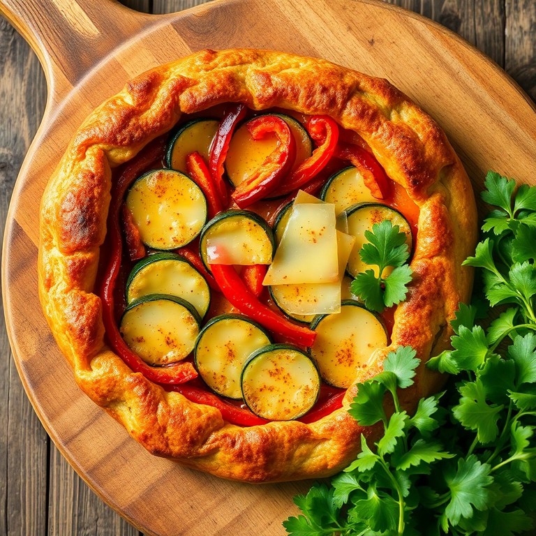 Een hartige taart met een knapperige bodem, gevuld met een mengsel van courgette, paprika, Gruyère kaas en een vleugje gerookte paprika. Perfect voor een brunch of lunch.