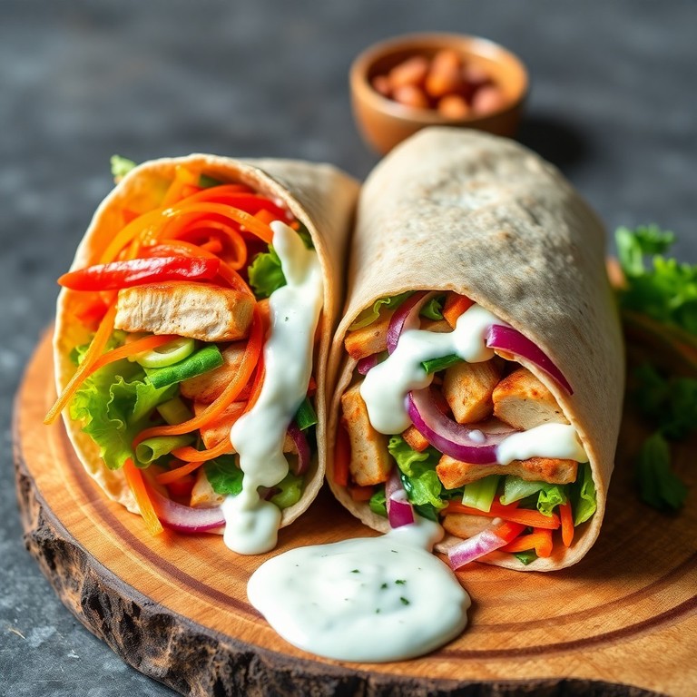 Un wrap nutritivo y fácil de preparar con tiras de pollo sazonadas y vegetales frescos, acompañado de una cremosa salsa de yogur que aporta frescura y sabor. Ideal para una cena rápida y satisfactoria sin complicaciones.