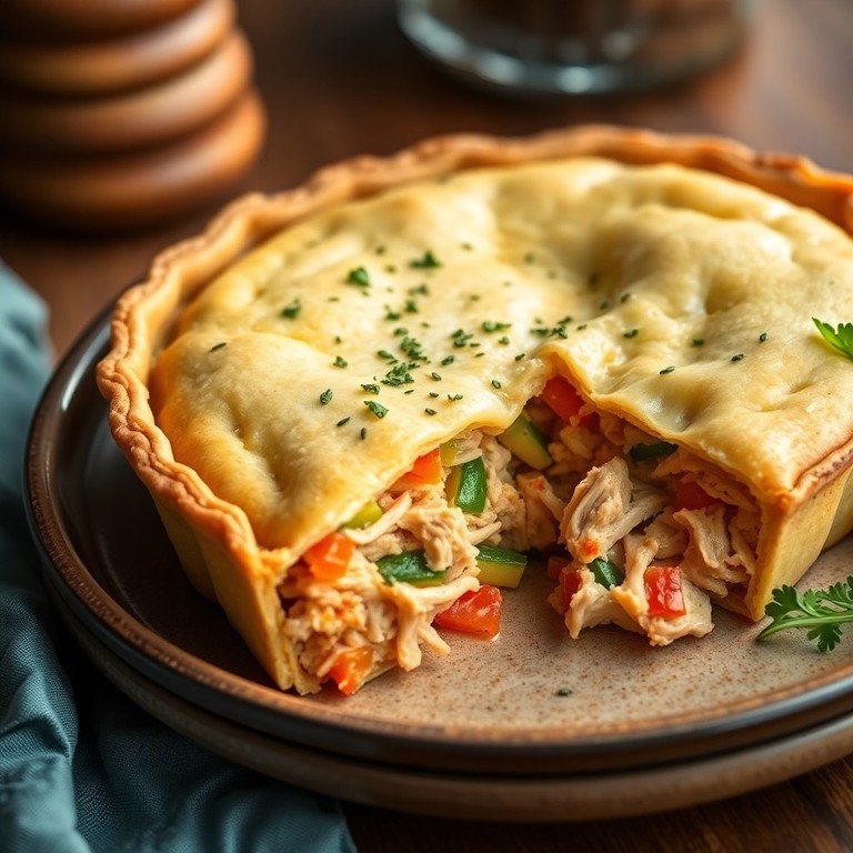 Uma torta salgada saudável e nutritiva feita com massa de farinha de grão-de-bico sem glúten, recheada com frango desfiado e legumes frescos. Ideal para quem busca uma opção saborosa e leve, perfeita para almoço ou lanche.