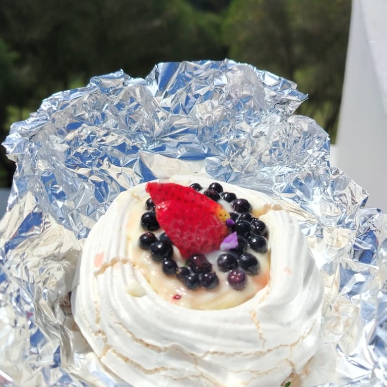 Delicado merengue horneado, relleno de crema chantilly y frutos rojos marinados. Un postre crujiente y cremoso, con el equilibrio justo entre dulzura y frescura.