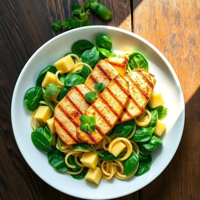 Perfecta para días calurosos, esta ensalada combina pollo a la parrilla, aguacate y pasta fría, aderezada con una vinagreta cítrica para un plato refrescante y nutritivo. Ideal como plato principal ligero y lleno de sabor, esta receta equilibra texturas y sabores frescos con la calidez del pollo recién cocinado.