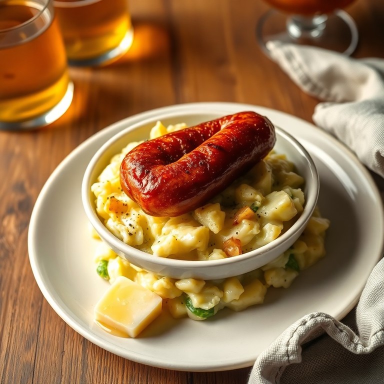 Een klassieke Nederlandse stamppot waarbij zachte aardappelpuree wordt gecombineerd met frisse, knapperige andijvie en geserveerd met een krokante rookworst. Dit gerecht is snel te bereiden en perfect voor een gezellige, hartige maaltijd in de herfst of winter.