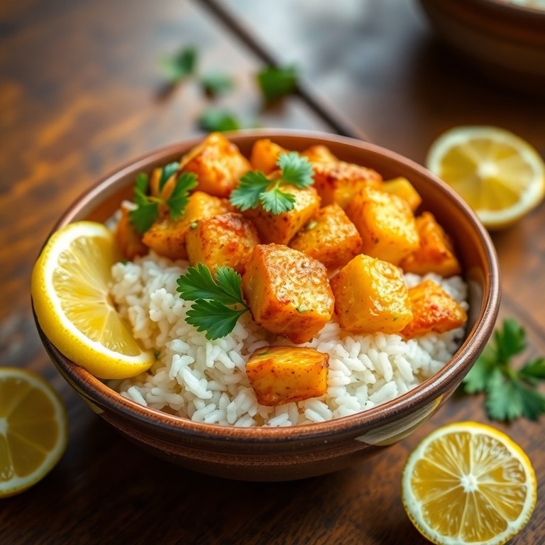 Un plato completo y abundante que combina arroz blanco, pollo sazonado y papas doradas, todo condimentado con especias tradicionales latinas. Perfecto para un almuerzo económico y rápido, este bowl ofrece sabores caseros y reconfortantes en cada bocado.