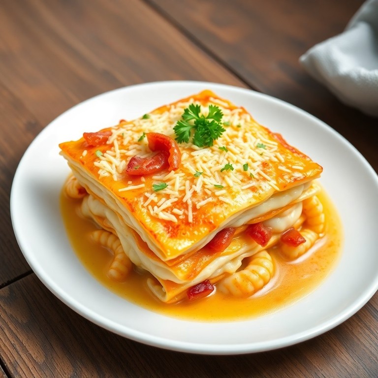Una versión innovadora de la clásica lasaña, que combina capas delicadas de filete de pescado blanco, camarones frescos y crujiente tocino, todo cubierto con una cremosa y suave salsa blanca. Esta receta ofrece un equilibrio perfecto entre sabores marinos y la textura ahumada del tocino, gratinada al horno hasta obtener una superficie dorada y apetecible. Ideal para quienes buscan una alternativa sofisticada y deliciosa a la lasaña tradicional.