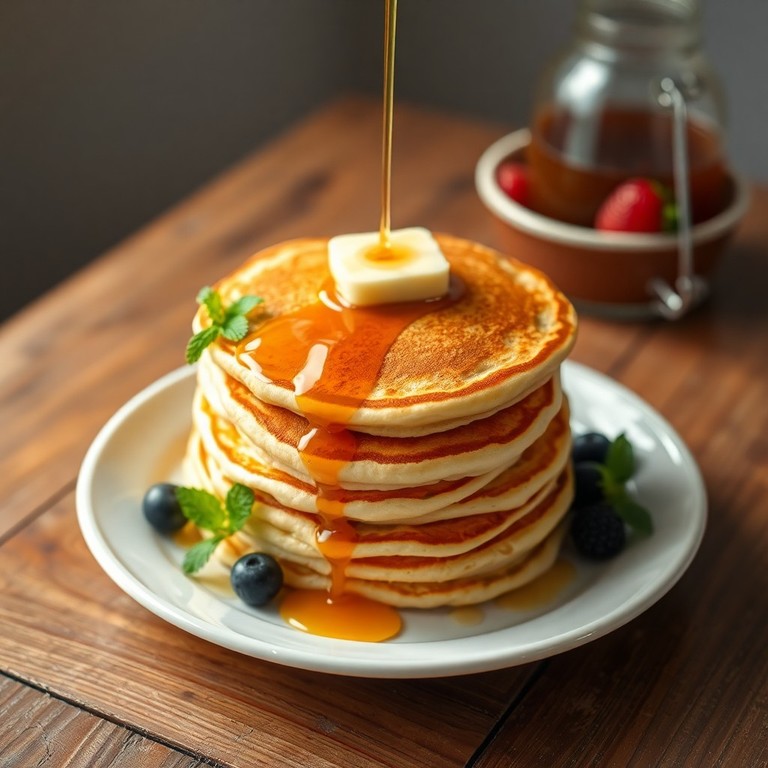 Deliciosas tortitas esponjosas hechas con huevo, harina y mantequilla, perfectas para un desayuno clásico y reconfortante. Estas tortitas suaves y doradas son ideales para acompañar con miel, jarabe de arce o frutas frescas, ofreciendo un desayuno nutritivo y lleno de sabor.