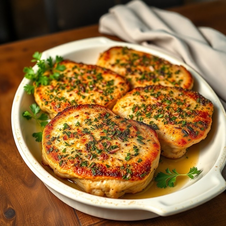Juicy pork chops seasoned with a flavorful blend of minced onions, fresh parsley, and Montreal steak seasoning, enhanced with a subtle touch of paprika for color and mild warmth. This oven-baked recipe ensures tender, perfectly cooked pork chops with a herbaceous crust that delivers a delightful balance of savory and aromatic flavors.