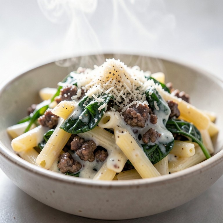 Een hartige en romige doordeweekse maaltijd die binnen 25 minuten op tafel staat, boordevol verse spinazie en smaakvol rundergehakt.