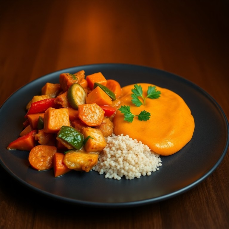 - Frango ao Molho de Pimentões com Purê de Batata Doce e Quinoa