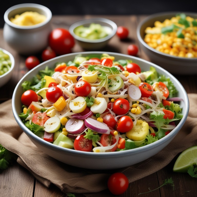- Salada Colorida com Batata, Queijo, Milho, Tomate, Xuxu e Soja
