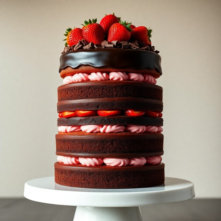 - Bolo de Camadas Festivo: Chocolate, Mousse de Morango e Brigadeiro Preto (Para 100 Pessoas)