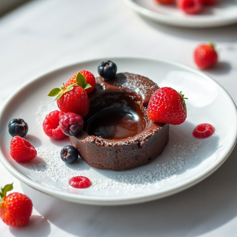 Mini Petit Gâteau de Chocolate com Frutas Vermelhas