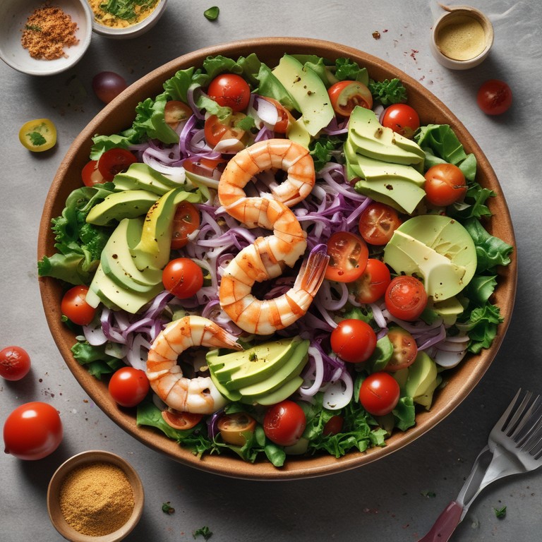 - Salada de Camarões Grelhados com Mix de Folhas, Abacate, Tomate Cereja e Molho Agridoce