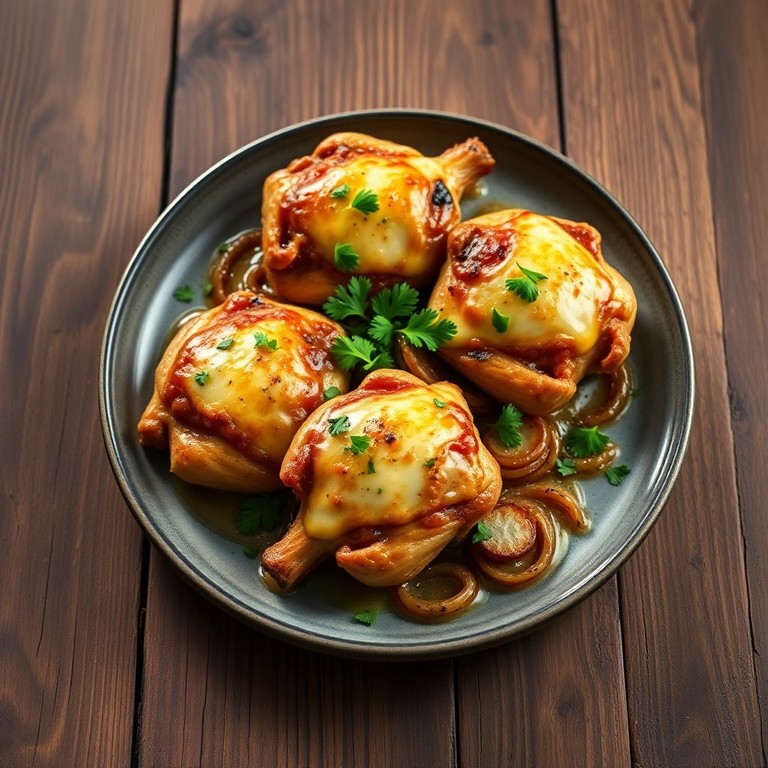 Mini Chickens ao Forno com Queijo e Cebola Caramelizada