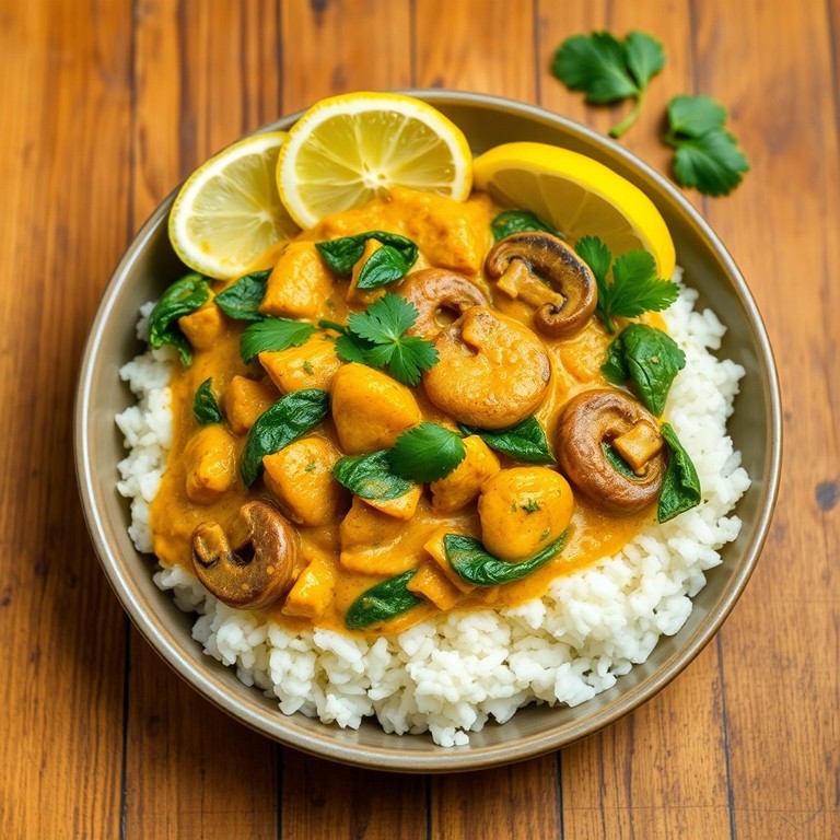 - Tigela de Curry de Cogumelos e Espinafre com Arroz de Couve-Flor